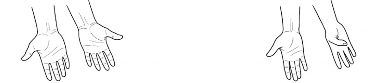 Straighten the palm of hand with fingers together and thumb against the side of hand.